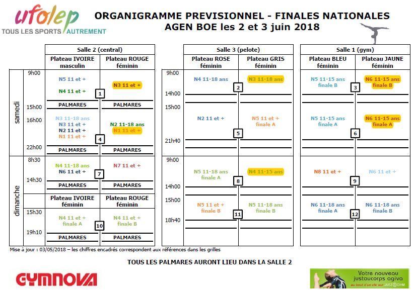 Le palmarès aura lieu dans la salle centrale ( salle 2 ) pour toutes les équipes.