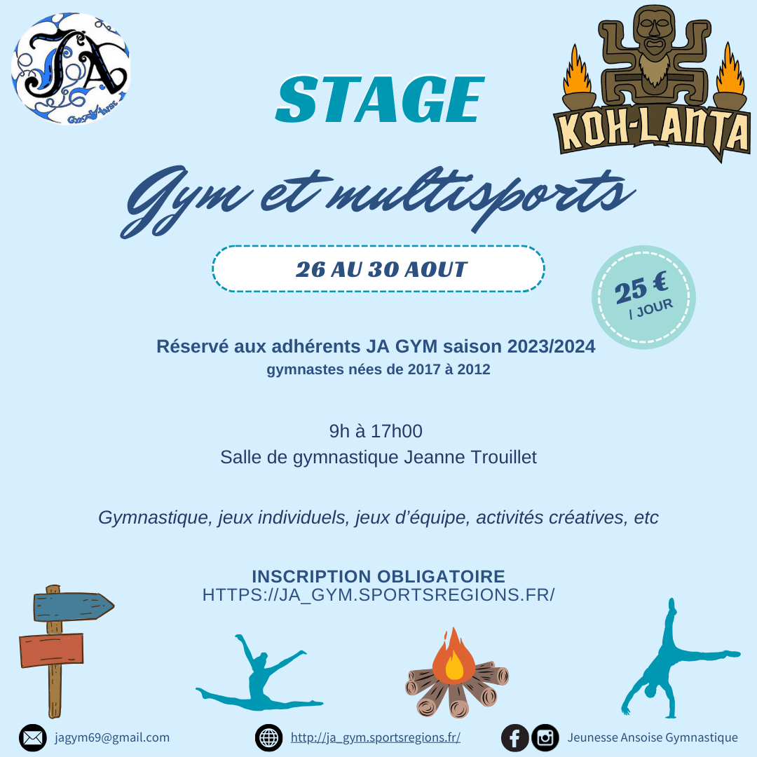 STAGE GYMNASTIQUE / MULTI-SPORTS POUR LES VACANCES : Du 26 au 30 août