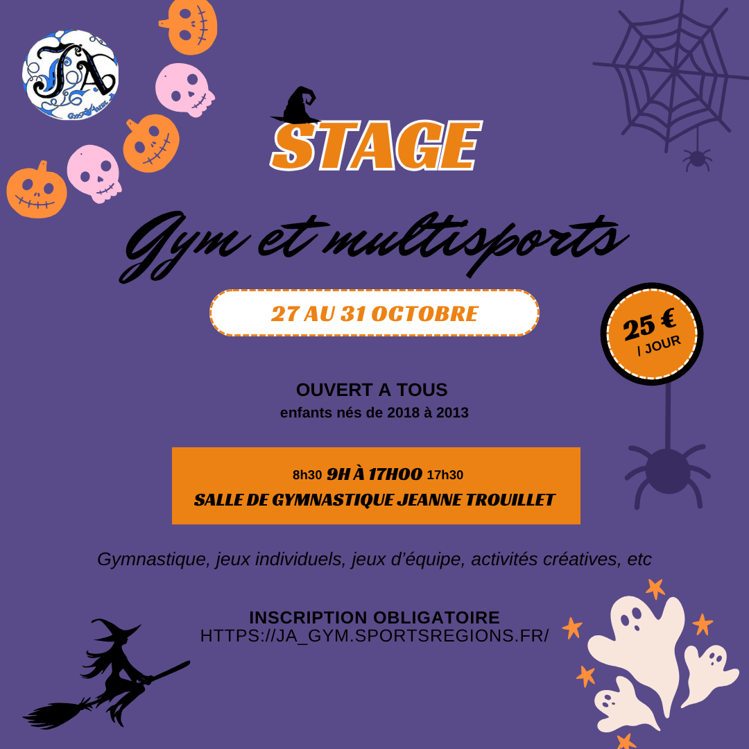 STAGE GYMNASTIQUE / MULTI-SPORTS POUR LES VACANCES : Du 27/10/2025 au 31/10/2025