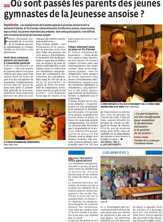 Hier, un article sur la JA Gym dans le progrès, un petit aperçu ici: http://www.leprogres.fr/beaujolais/2014/10/28/jeunesse-ansoise-la-galere-pour-impliquer-les-parents