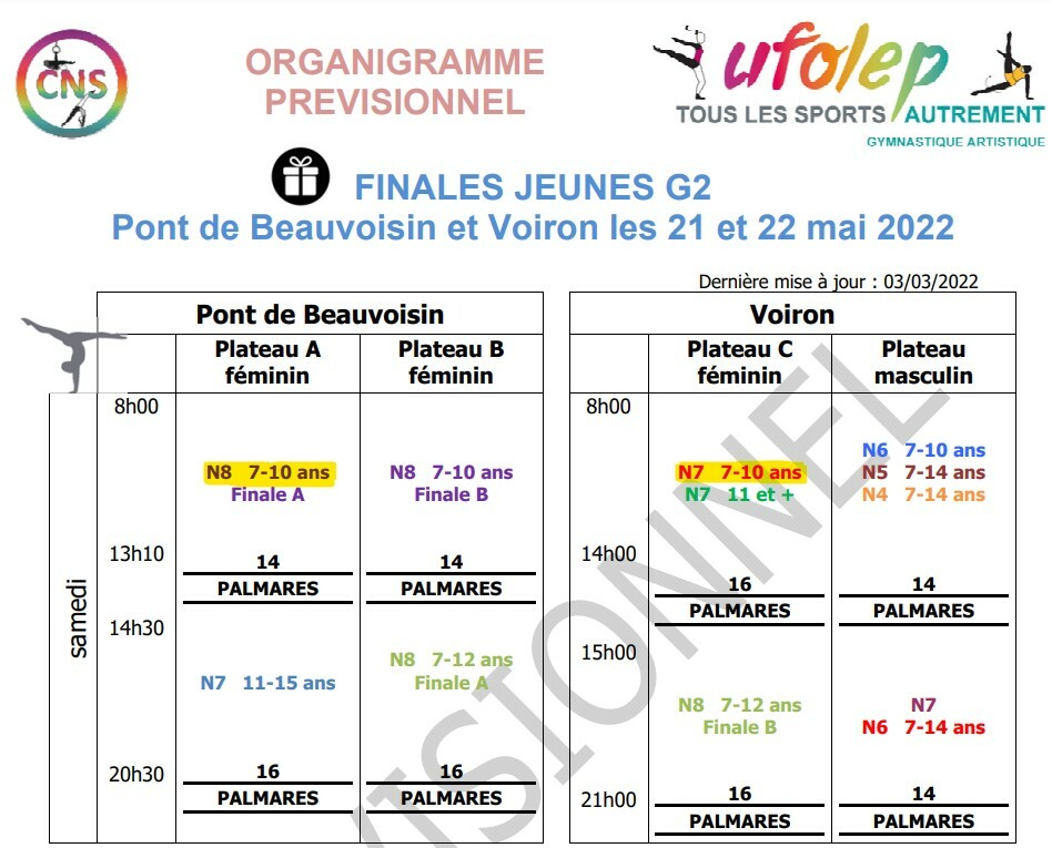 Planning Entraînements
