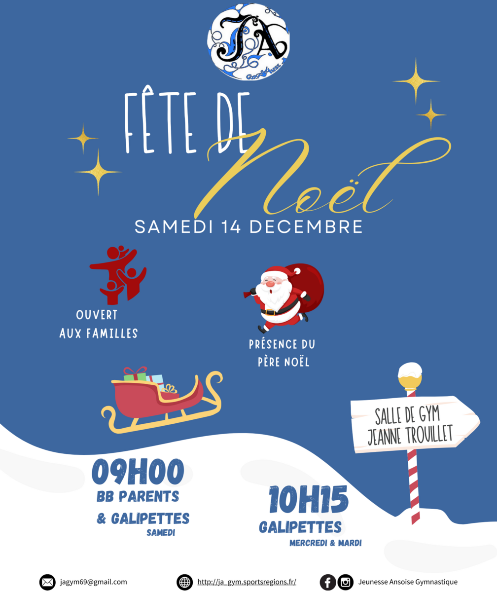 Samedi 14 décembre c'est Noël à la JA Gym 🎄🤶🎅 Nous espérons vous voir nombreux pour célébrer ensemble cette période joyeuse de l'année. Nous sommes impatients de partager ce moment avec vous.